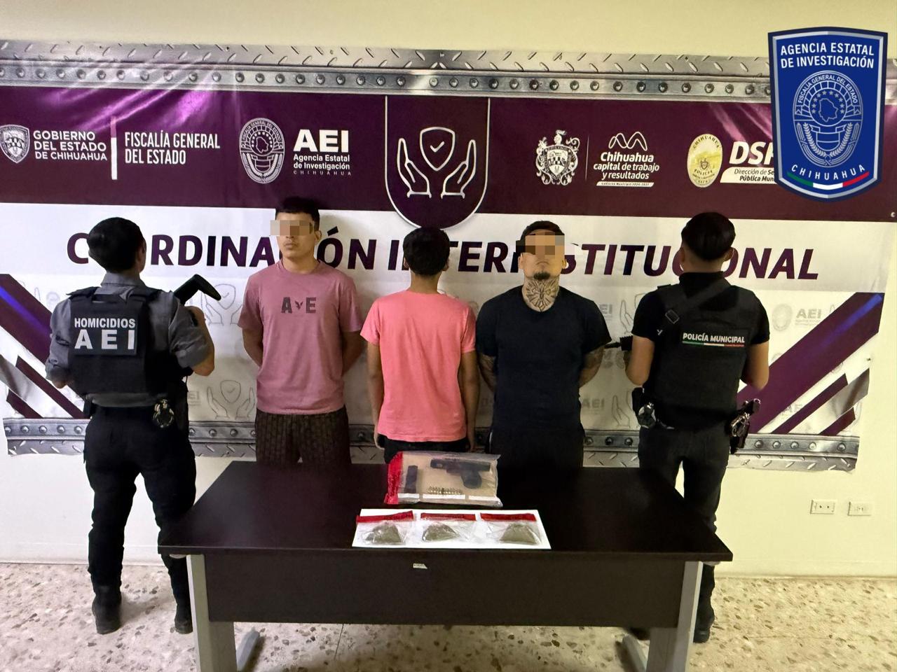 Como resultado de un Operativo Conjunto en la ciudad de Chihuahua, por parte de elementos de la Agencia Estatal de Investigación (AEI) adscritos a la Fiscalía de Distrito Zona Centro, y de la Dirección de Seguridad Pública Municipal (DSPM), este miércoles 20, se logró detener a tres personas en flagrancia, por el delito de posesión de narcóticos y portación de arma de fuego.