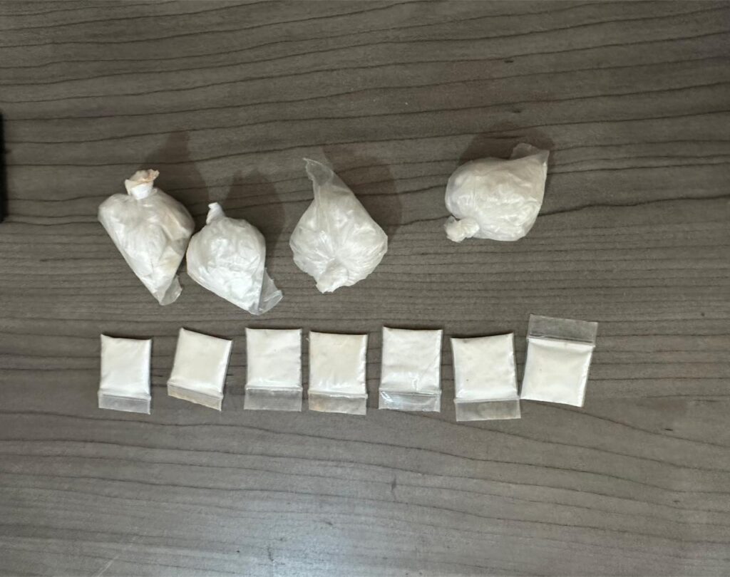 • 07 envoltorios transparentes que en su interior contienen un polvo fino de color blanco con características similares a la cocaína, con un peso de 6.8 gramos.