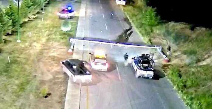 De acuerdo con el reporte oficial, a las 03:30 horas se recibió una llamada en el Sistema de Emergencias que alertaba sobre la presencia de hombres armados en la entrada de la cabecera municipal, quienes dañaban las estructuras que sostenían cámaras de videovigilancia pertenecientes a la Plataforma Centinela.