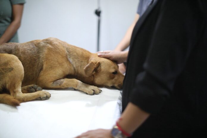 “Oso” es el nombre del perrito agredido, el cual fue intervenido por médicos veterinarios de DABA y actualmente está en recuperación.