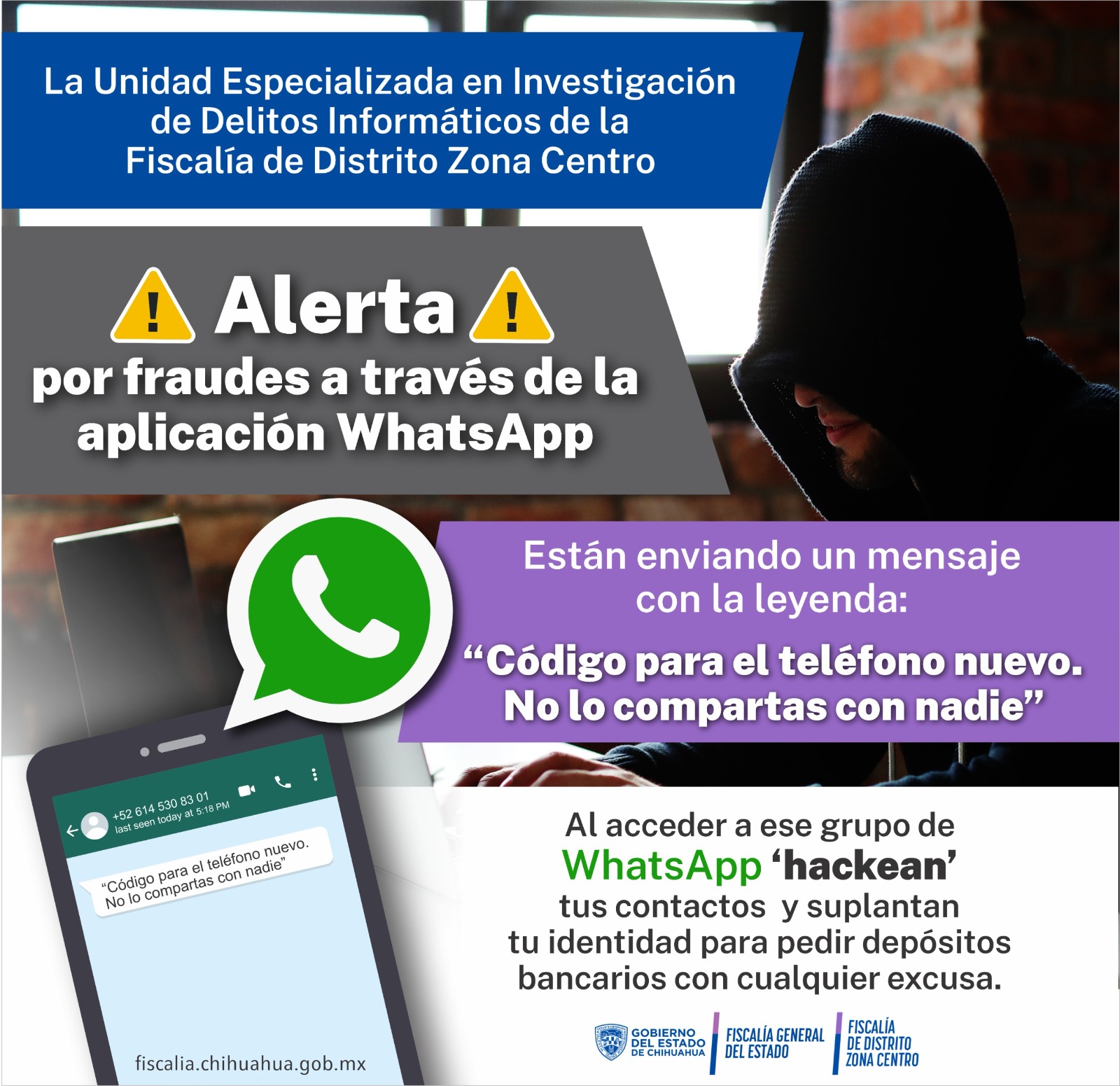 La Unidad Especializada en Investigación de Delitos Informáticos de la Fiscalía de Distrito Zona Centro, pide a la población estar atenta de los mensajes recibidos por redes sociales digitales a nombre de paqueterías que ofrecen un supuesto código de seguridad, toda vez que se utiliza para robar información.