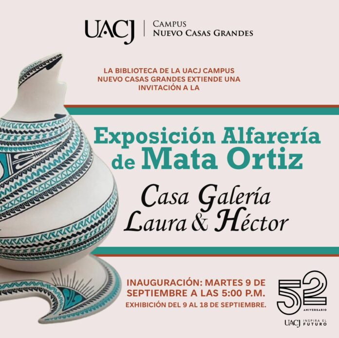 Los destacados ceramistas de Mata Ortiz, Laura Bugarini y Yeto Gallegos expondrán varias de sus obras en la UACJ NCG durante los primeros días de septiembre para lo cual se extiende una invitación para asistir y no dejar pasar la oportunidad de disfrutar de estas bellísimas obras.