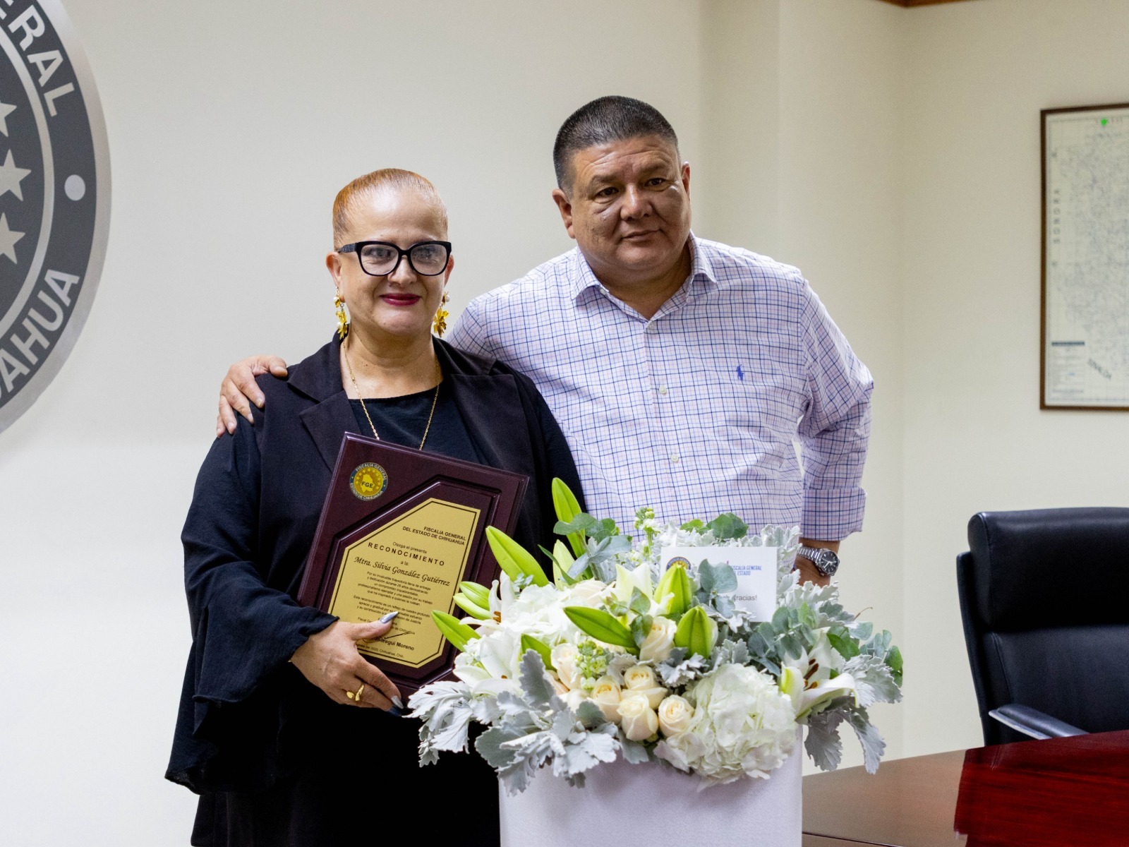 El Fiscal General, César Jáuregui Moreno, le entregó un reconocimiento por la labor realizada durante todo este tiempo, así como por su aportación como Fiscal de Distrito Zona Occidente, cuyo cargo desempeñó desde el 8 de marzo del 2023.
