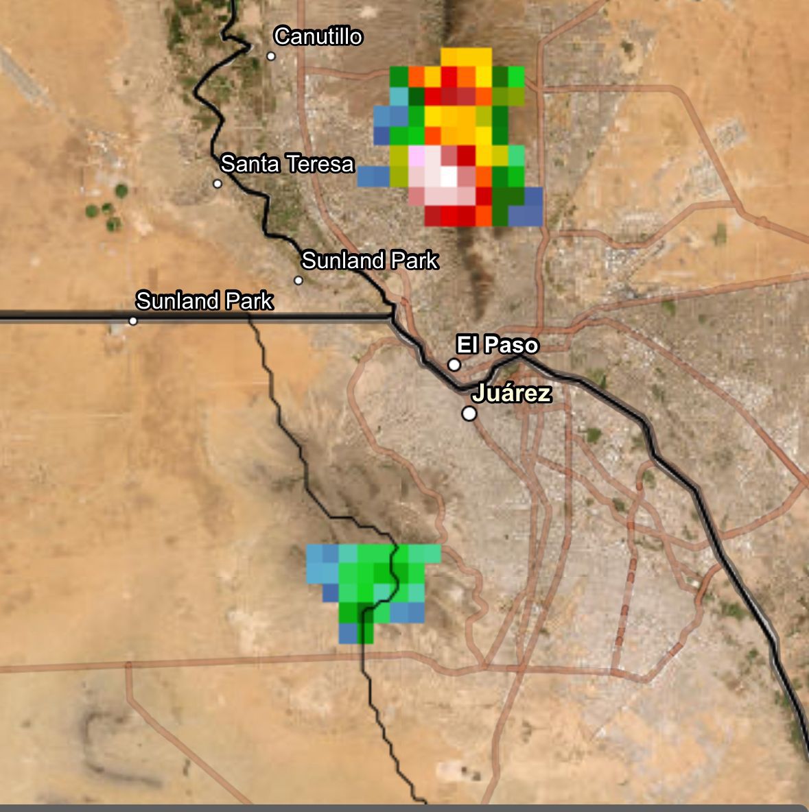 La Dirección de Protección Civil informa que la tormenta registrada al suroeste, en las cercanías de la Sierra de Juárez, ha perdido densidad y dejó de considerarse como tal. Sin embargo, se ha desarrollado rápidamente una tormenta severa al norte del municipio, sobre territorio estadounidense, la cual permanece estática en esa zona.