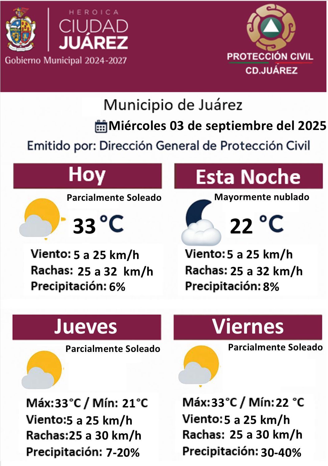 HomeREGIONALESJuárezProtección Civil emite pronóstico del clima