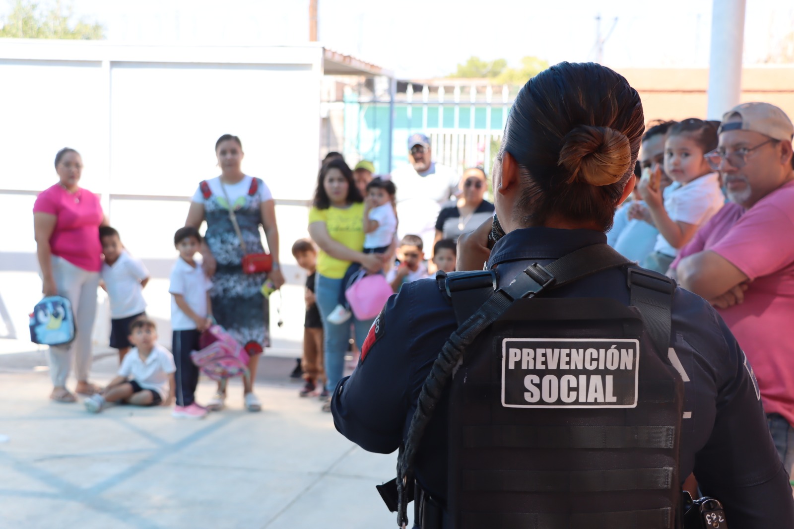 Personal de la SSPM visitó las escuelas primarias Mariano Jiménez y José Vasconcelos Calderón, en donde el director de Prevención Social, Antonio Salas Martínez estuvo en representación del presidente Cruz Pérez Cuéllar, realizando la entrega de los útiles escolares.