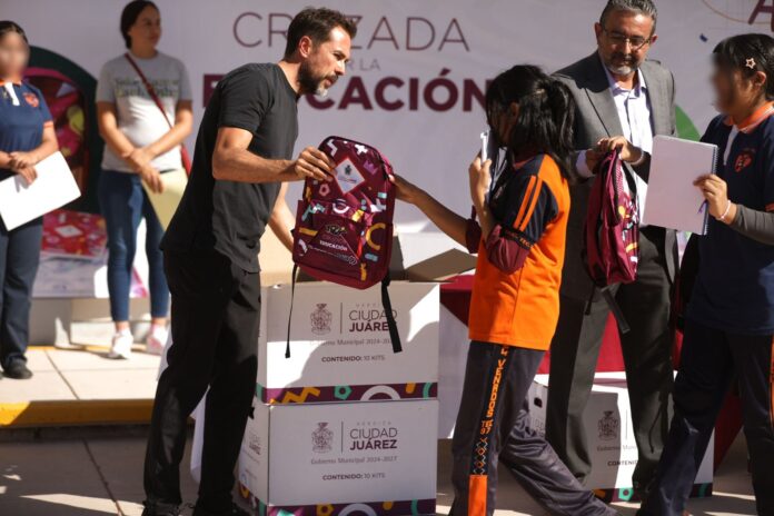 En representación del Presidente Municipal, Cruz Pérez Cuéllar, acudió el director general de Obras Públicas, Daniel González García, quien destacó ante los estudiantes y padres de familia el compromiso del alcalde por la educación, ahora con la entrega de estos útiles, como un apoyo directo a la economía de las familias juarenses.