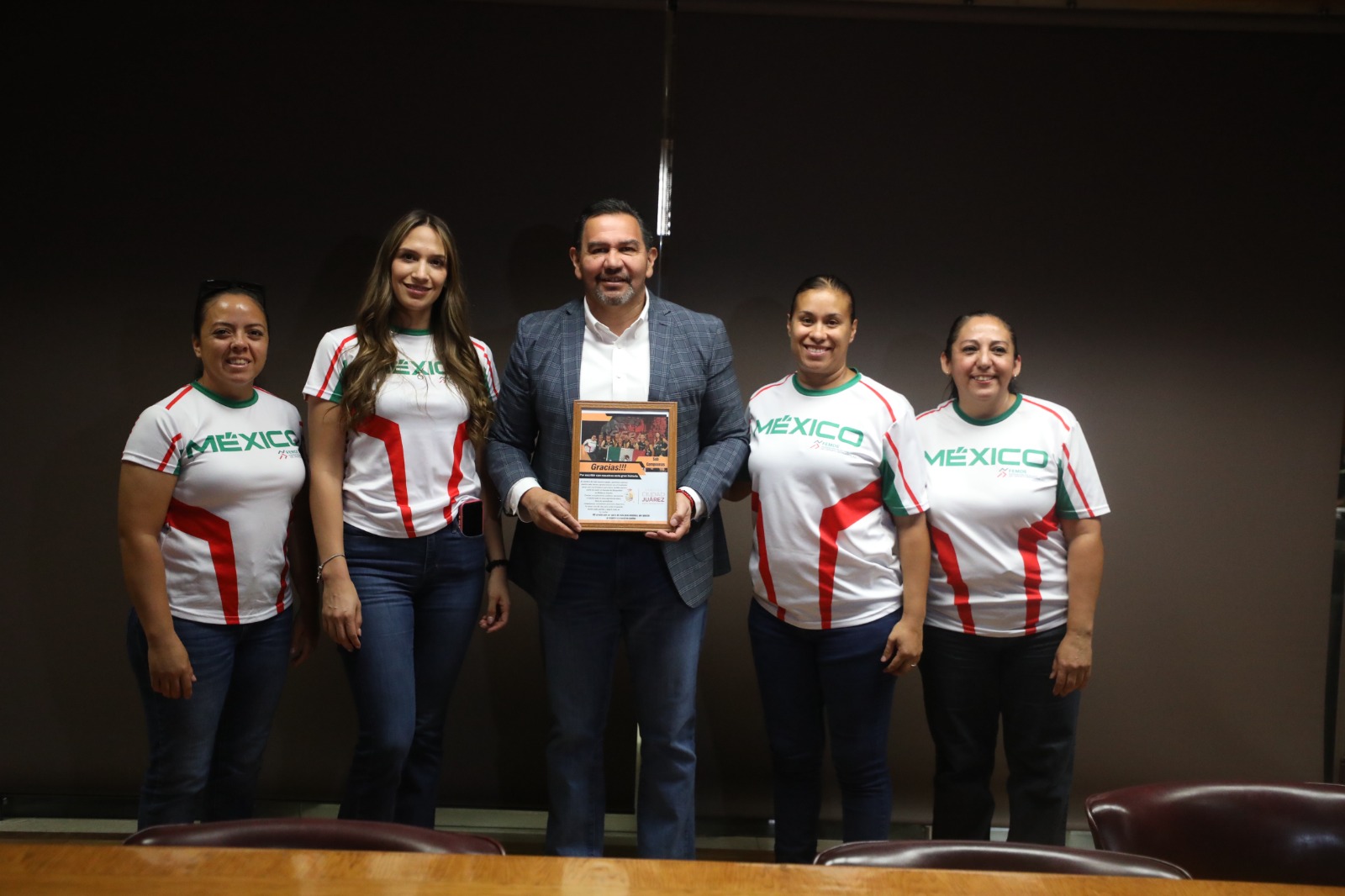 El Presidente Pérez Cuéllar recibió una placa por parte de las jugadoras, agradeció el gesto y reconoció el logro de llegar a una final, porque con esto se demuestra que las y los juarenses son personas comprometidas y con ganas de triunfar.