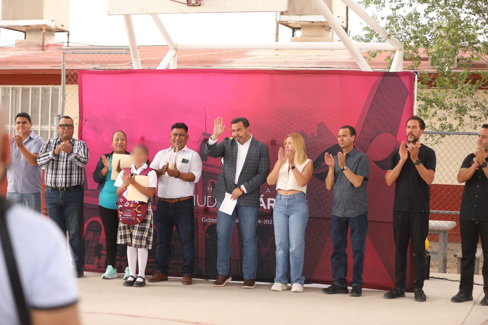 “Nos da mucho gusto entregar estos trabajos en esta escuela en la que también anteriormente se hizo un domo y plancha de concreto”, expresó el edil juarense.