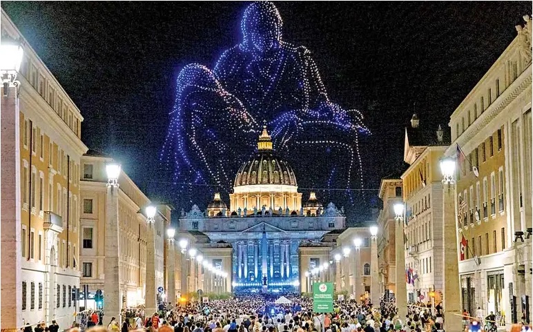 Además, la cúpula de San Pedro se iluminó con un espectáculo aéreo de más de 3.000 drones y luces, con imágenes inspiradas en los frescos de la Capilla Sixtina y en el que se homenajeó al papa Francisco. Un evento que, como se subrayaba en el comunicado de prensa de presentación del encuentro, celebra “la fuerza de la fraternidad” y lanza al mundo “un abrazo simbólico y un renovado compromiso colectivo por la protección de la Creación”.