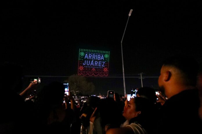 Posterior al Grito de Independencia que encabezó el Presidente Municipal, Cruz Pérez Cuéllar, las miles de familias asistentes disfrutaron de un espectáculo de drones y pirotecnia.