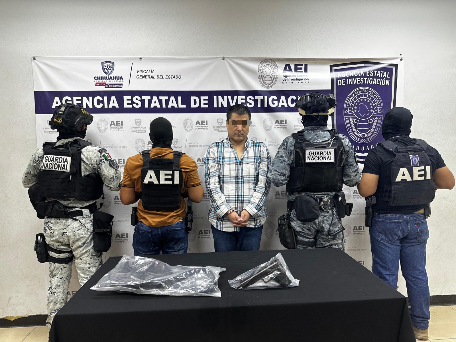 Elementos de la Agencia Estatal de Investigación de la Fiscalía de Distrito Zona Norte, detuvieron en flagrancia a quien dijo llamarse Arturo M. Z., de 39 años, por posesión de un arma de fuego, en la colonia Los Nogales de Ciudad Juárez.
