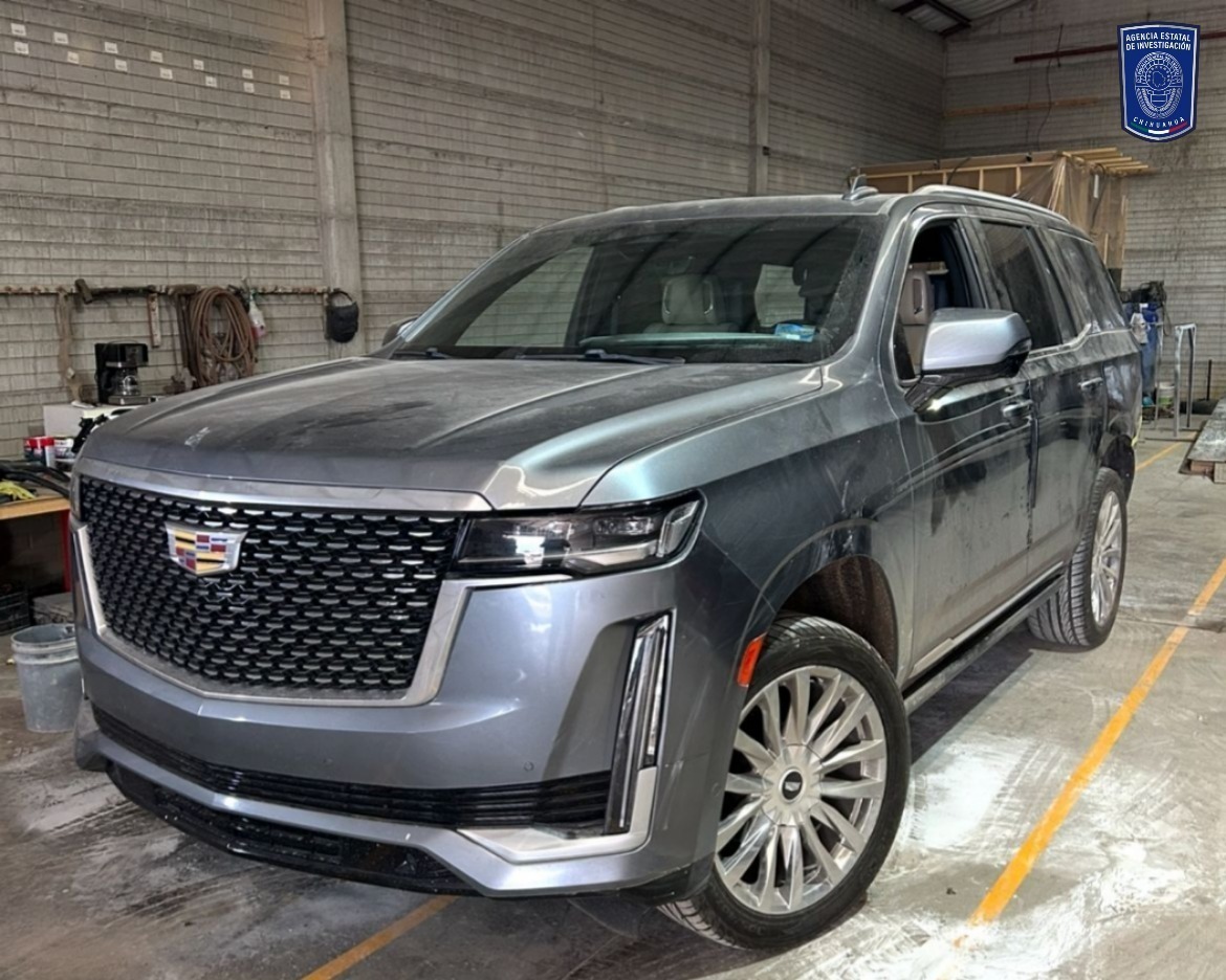 Elementos de la Agencia Estatal de Investigación, adscritos a la Fiscalía de Distrito Zona Occidente, aseguraron un vehículo de la marca Cadillac, modelo 2021, color gris, que contaba con reporte de robo interpuesto el 24 de marzo del año 2024, en la ciudad de Hidalgo del Parral.