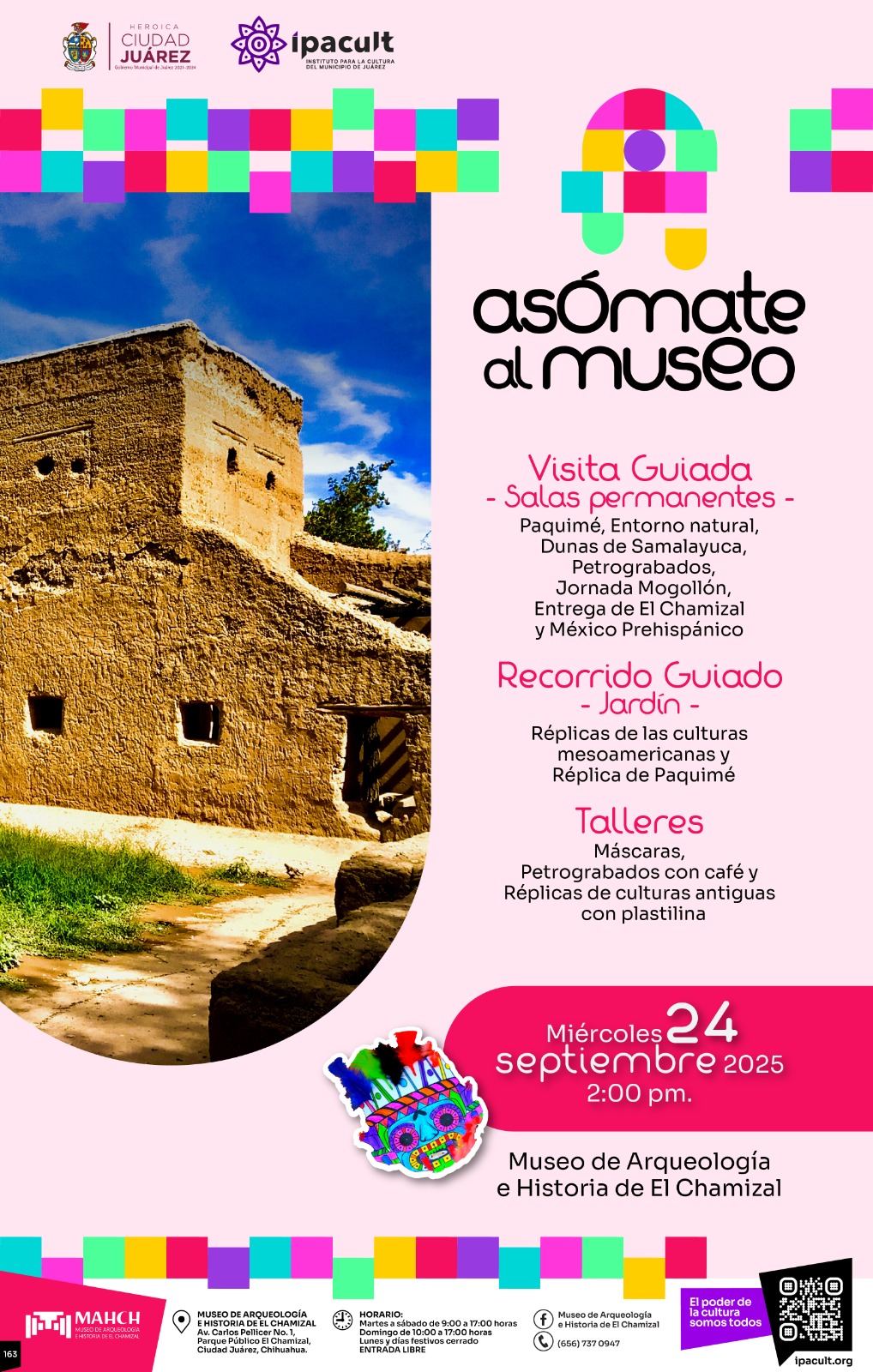 La actividad iniciará a las 2:00 de la tarde con un recorrido guiado por las salas permanentes del recinto, donde los estudiantes conocerán exposiciones como Paquimé, Entorno Natural, Dunas de Samalayuca, Petrograbados y Jornada Mogollón.