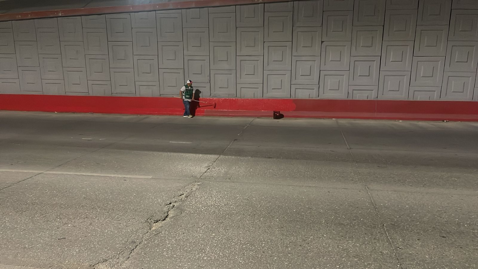 El funcionario agregó que, además de la pintura, se realizan acciones complementarias de limpieza y ordenamiento en la zona, incluyendo la atención a personas que pernoctan en el lugar.