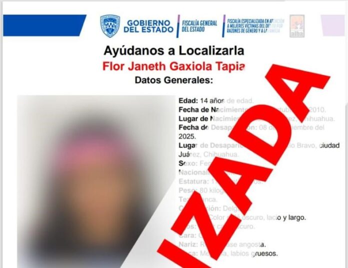 El reporte interpuesto ante la Unidad Especializada en Investigación de Mujeres Ausentes y/o no Localizadas, establecía que la adolescente de 14 años se ausentó el día 08 de septiembre del año en curso, cuando se salió sin autorización de una escuela ubicada en la colonia Río Bravo de Ciudad Juárez.