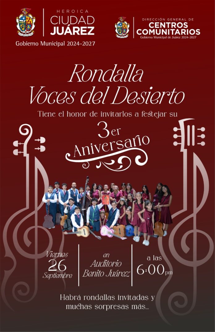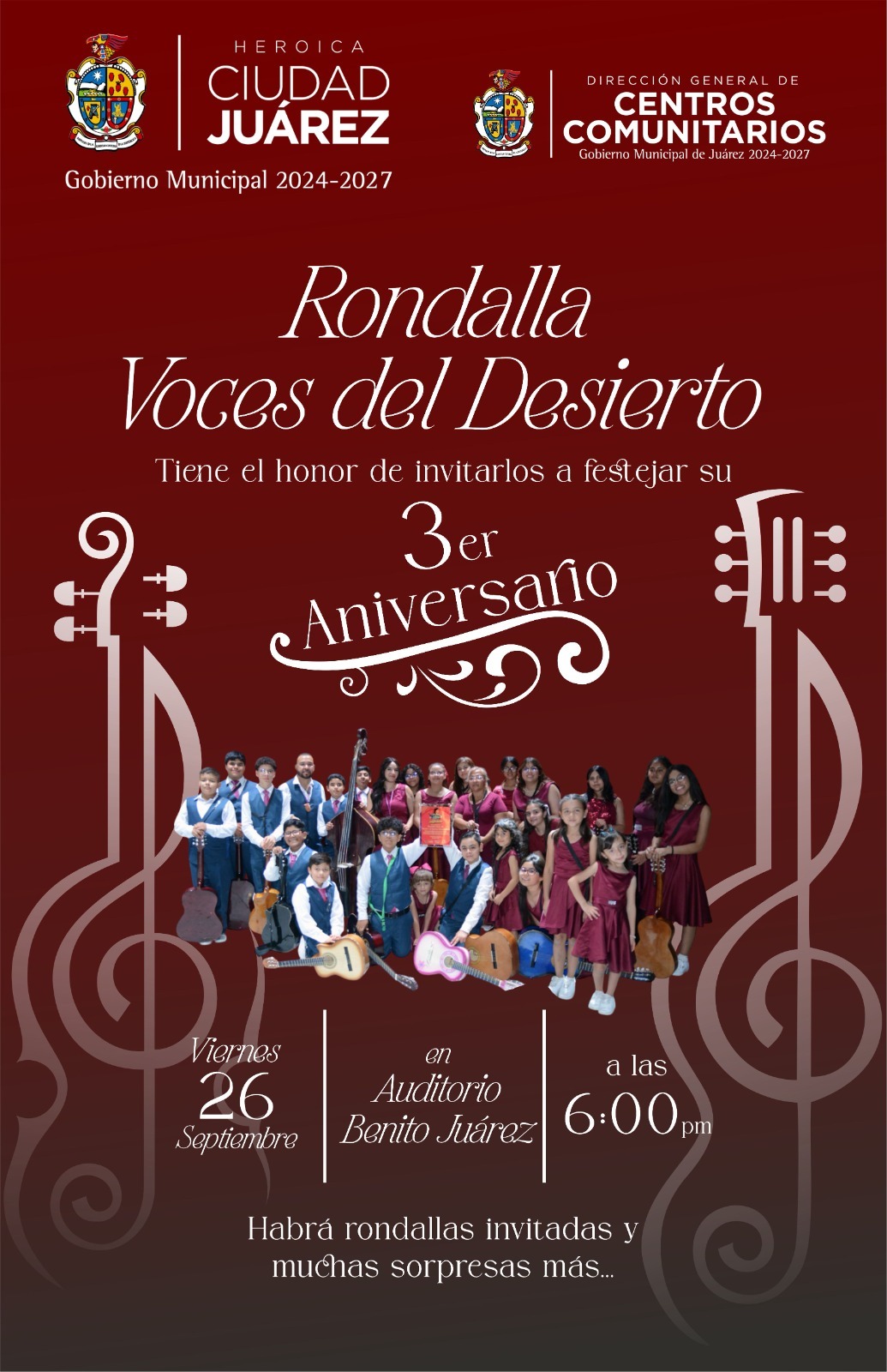 La Rondalla Voces del Desierto de la Dirección General de Centros Comunitarios invita a la ciudadanía a festejar su tercer aniversario