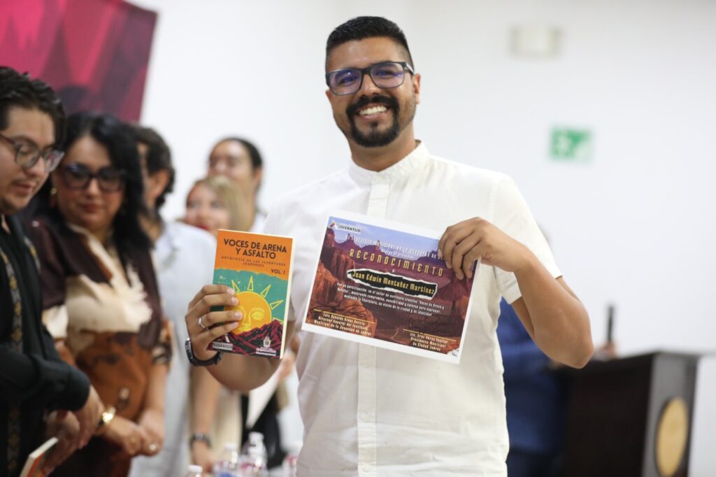 Durante la ceremonia, también se entregó un reconocimiento al propio Aboytia por su trayectoria, y se contó con la participación de autoridades municipales, representantes de la educación y la cultura, además de familiares y amigos de los jóvenes escritores.