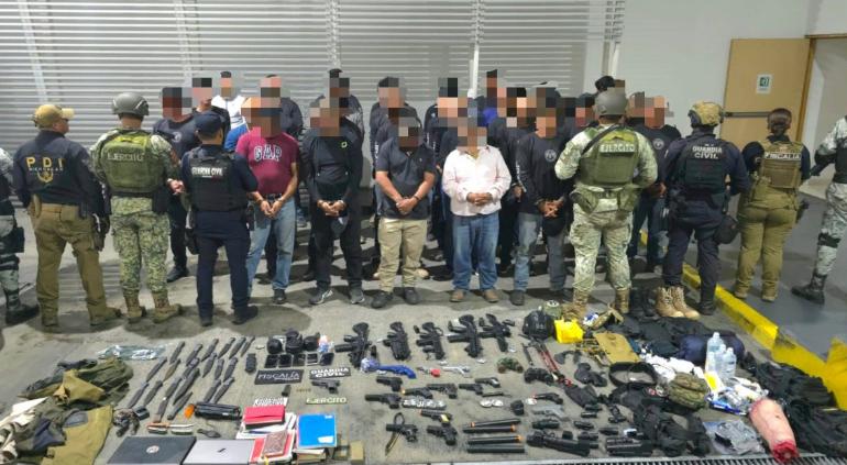 Además, los detenidos, que son identificados como guardias de seguridad de líderes, templos y eventos de La Luz del Mundo, no pudieron acreditar el uso legal del campamento donde fueron localizados ni de la procedencia lícita del equipo decomisado.