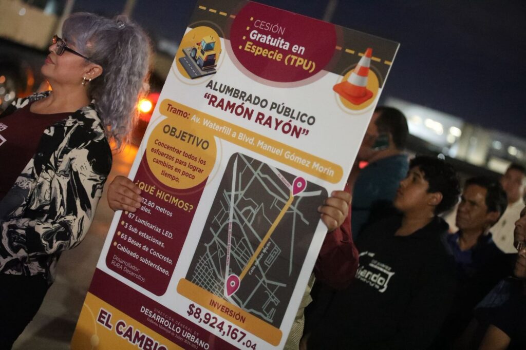 El Presidente Municipal, Cruz Pérez Cuéllar, encabezó el encendido de luminarias en la avenida Ramón Rayón, en el tramo que va de Waterfill al bulevar Manuel Gómez Morín, así como en la calle Clara Fuentes, beneficiando a miles de habitantes con espacios seguros y mejor iluminados.