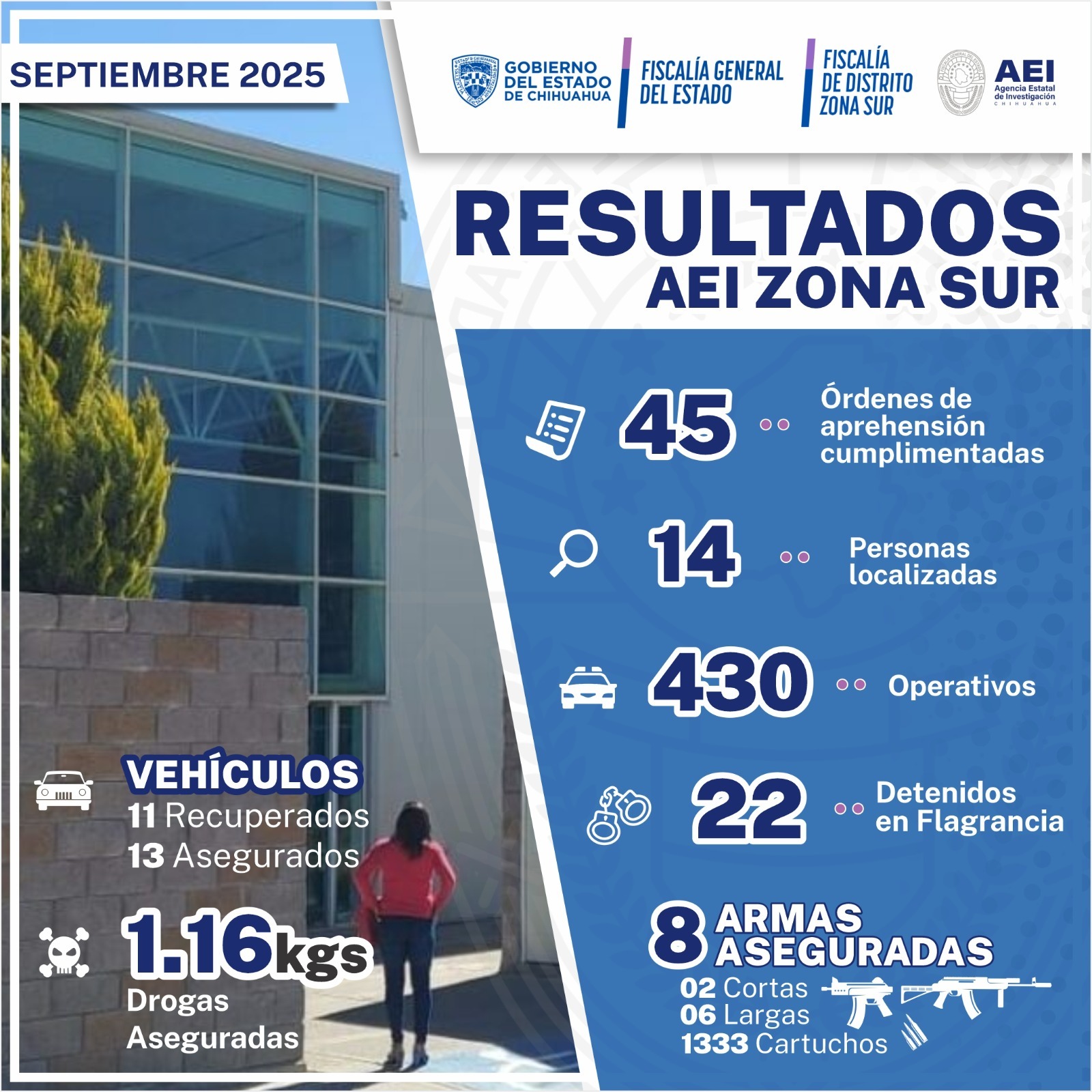 En seguimiento a los trabajos de operatividad e inteligencia, la Agencia Estatal de Investigación (AEI), obtuvo importantes resultados durante el mes de septiembre de 2025, en la región sur de la entidad.