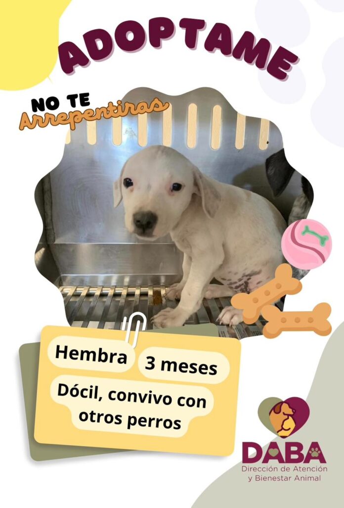 “Pedimos que acudan a DABA a conocer a las mascotas que tenemos y adopten, pues con esto le dan una oportunidad a un peludito que lo necesita”, indicó.
