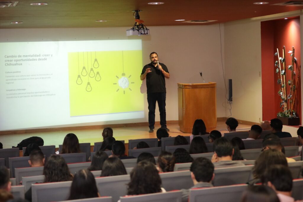 Con el propósito de inspirar a los universitarios en el tema de tecnología e inteligencia artificial, esta tarde se llevó a cabo la conferencia magistral “Transformando Juárez en en nuevo Silicon Valley Mexicano: Una Visión de 20 años”.