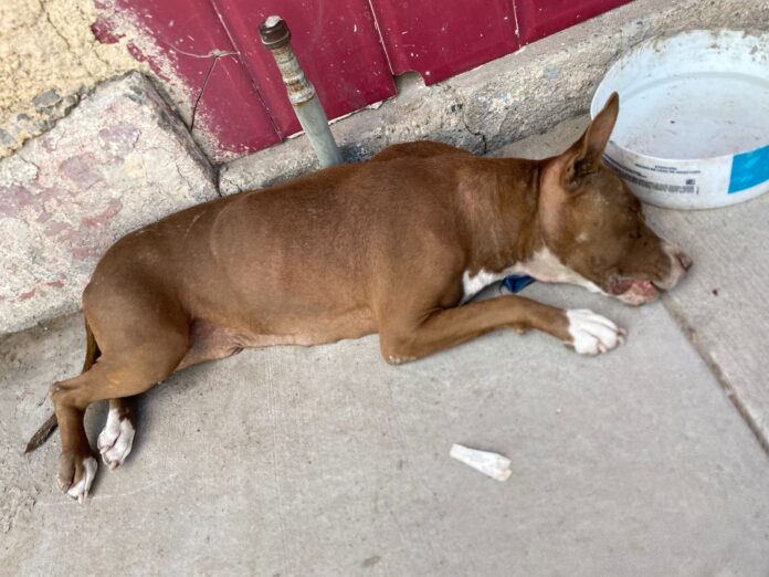 La Dirección de Atención y Bienestar Animal (DABA) atendió a una perrita de raza pitbull que sufrió violencia por parte de un hombre, quien la amarró con una soga a un árbol.