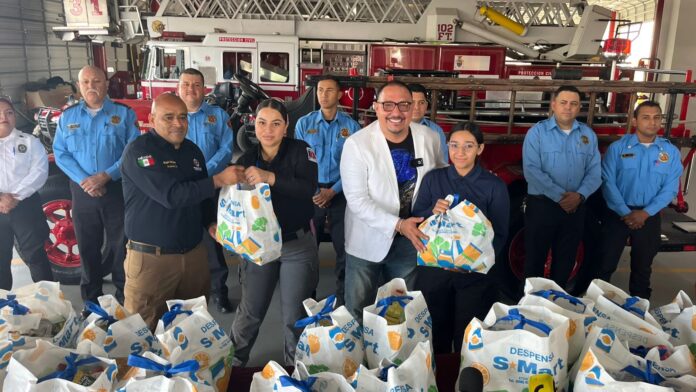 La Cámara Nacional de Comercio (CANACO), en coordinación con transportistas locales y el grupo SMART, entregó 80 despensas a elementos de los departamentos de Bomberos y Rescate, como un gesto de reconocimiento a su entrega, valentía y compromiso con la comunidad.