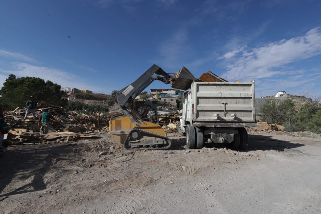 “Se trata de un importante acumulamiento de residuos de tarimas justo sobre el bordo del río Bravo. Estamos a unos metros de propiedad federal y la importancia de su remoción radica tanto en cuestiones de seguridad como de salud pública. Este tipo de material, con las lluvias y la humedad, genera condiciones propicias para la presencia de plagas nocivas”, explicó Solís.