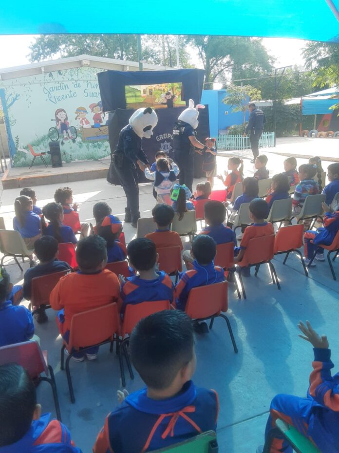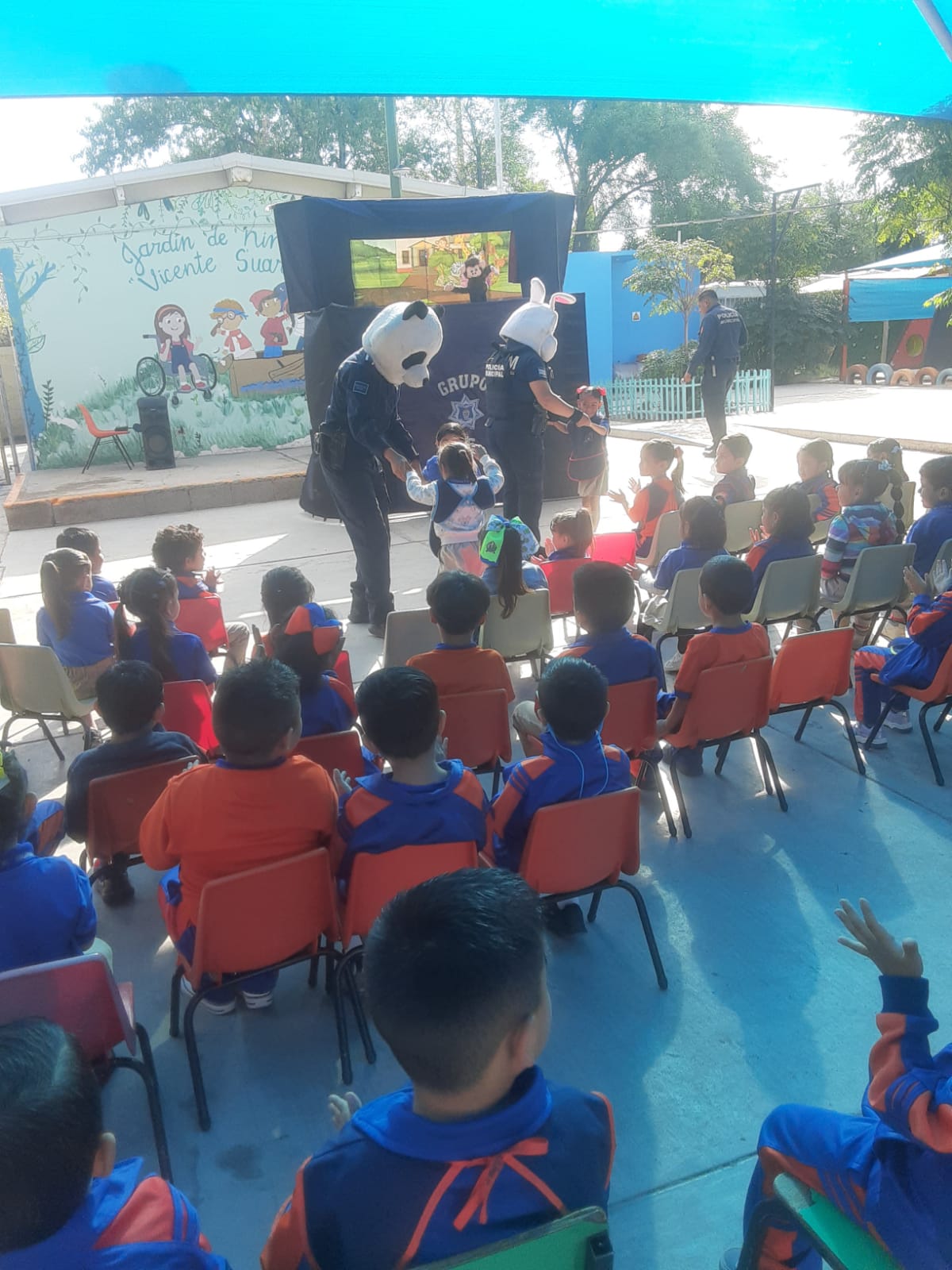 Como parte de las acciones de prevención social y apoyo ciudadano, personal de la Secretaría de Seguridad Pública Municipal adscritos a la Dirección de Prevención Social, llevaron a cabo una función de Teatrino al Jardín de Niños “Vicente Suárez”.