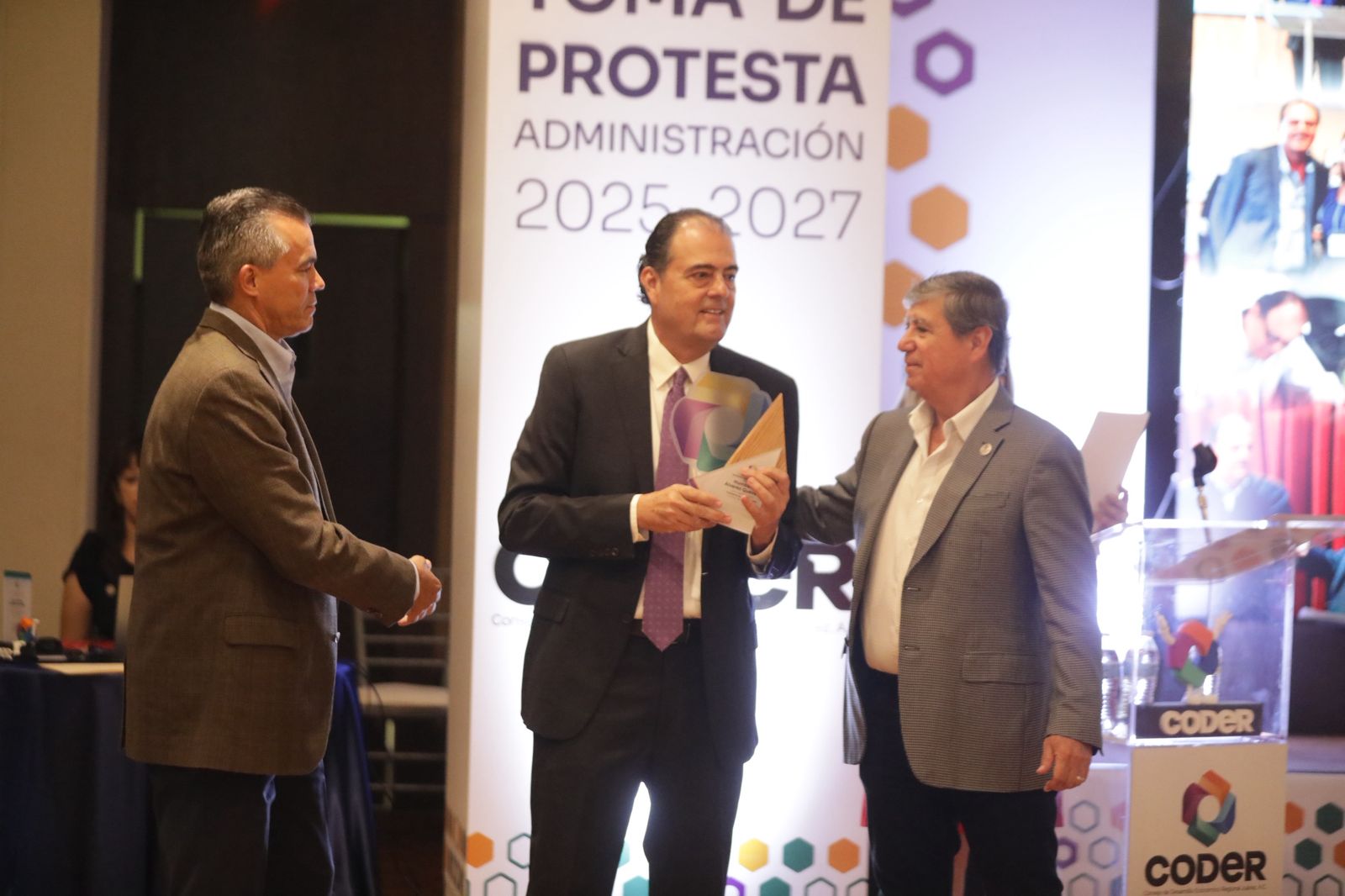 Durante la reunión donde se resaltaron los proyectos estratégicos, el Alcalde tomó protesta al nuevo presidente de CODER, Julián Pedroza Cervantes y al consejo directivo de la Administración 2025-2027, además agradeció la labor de Humberto Álvarez Quevedo, anterior presidente.
