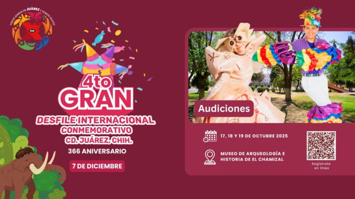 Hoy dieron inicio las audiciones para formar parte del Gran Desfile Conmemorativo 2025, mismas que se estarán realizando a partir de este día, mañana sábado y el próximo domingo en las instalaciones del Museo de Arqueología e Historia de El Chamizal, a partir de las 10:00 de la mañana.