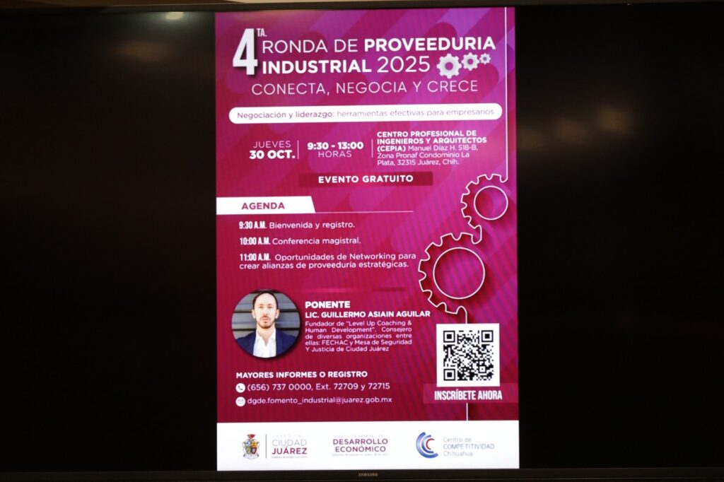 “Nos da muchísimo gusto anunciar esta cuarta ronda, un evento que ha sido muy exitoso porque los principales beneficiados son nuestros proveedores juarenses. Estamos promoviendo temas de negociación, liderazgo y herramientas efectivas para empresarios”, expresó.