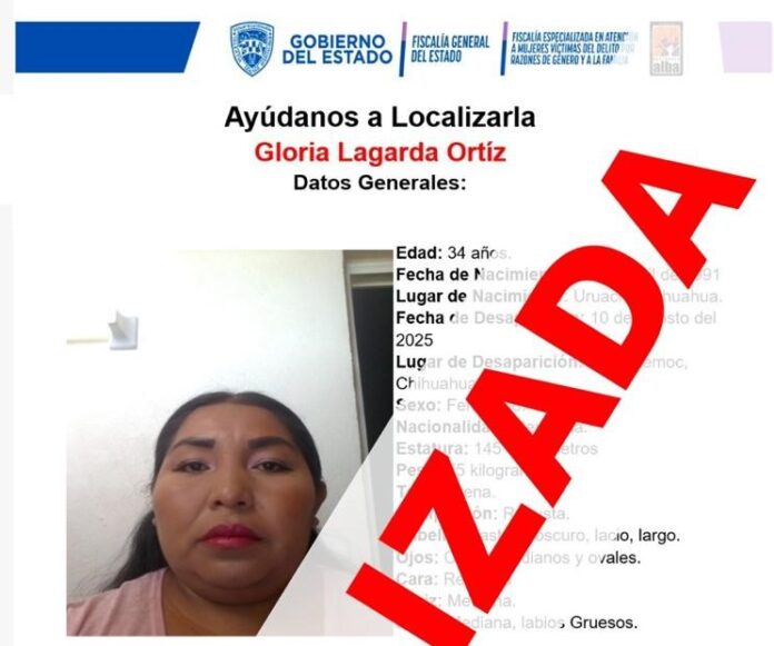En seguimiento a los protocolos de búsqueda y localización, la Fiscalía Especializada en Atención a Mujeres Víctimas del Delito por Razones de Género y la Familia en la Zona Occidente, localizó sanas y salvas a Gloria L. O. y a la menor de edad de iniciales R.D.P.L., quienes contaban con reporte de ausencia interpuesto en la ciudad de Cuauhtémoc.