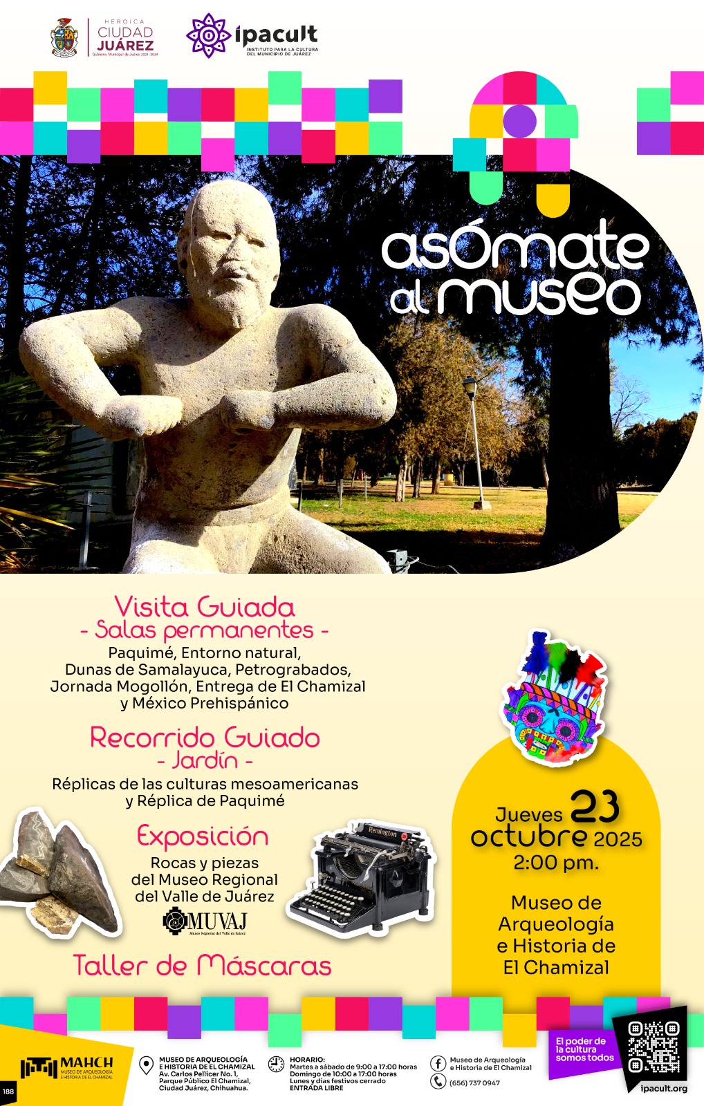 La actividad iniciará a las 2:00 de la tarde con un recorrido guiado por las salas permanentes del recinto, donde los estudiantes conocerán exposiciones como Paquimé, Entorno Natural, Dunas de Samalayuca, Petrograbados y Jornada Mogollón.