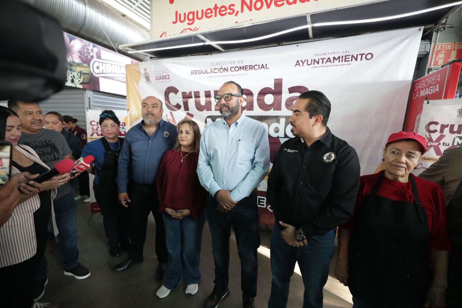“Este día estamos trabajando en el corazón de Ciudad Juárez, seguimos llevando a cabo las actividades dentro del programa Cruzada por tu Mercado”, señaló el director.