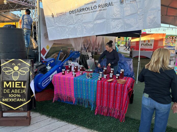 Asimismo, señaló que participan 14 expositores de la zona rural juarense quienes ofrecen miel de abeja, conservas de melón, especias, nuez procesada, queso de cabra, bisutería y repostería artesanal, servicios de hotel para perros, pasto sintético y herrería artesanal.