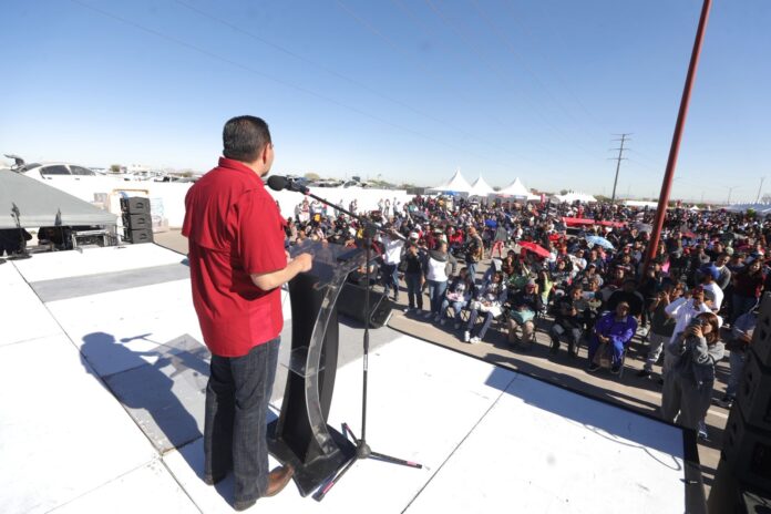 Durante su mensaje, el alcalde destacó la importancia del trabajo conjunto entre los tres niveles de gobierno para atender la alta demanda de vivienda en la frontera y ofrecer soluciones a las familias juarenses. “Lo mejor que podemos hacer para ir avanzando es estar bien coordinados con el gobierno del estado y con el gobierno federal”, expresó.