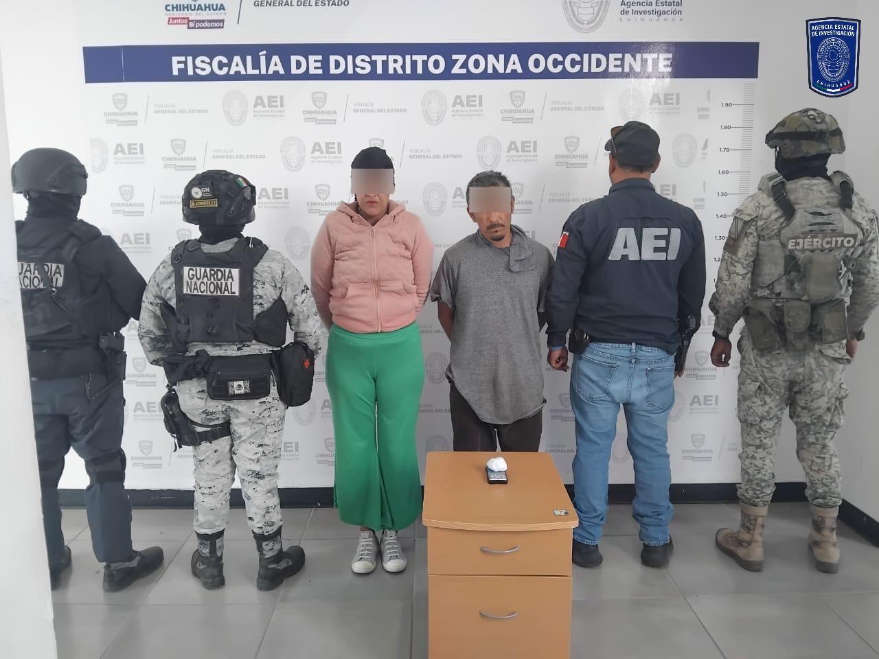 En seguimiento a una investigación por delitos contra la salud, elementos de la Agencia Estatal de Investigación, con apoyo del Ejército Mexicano y la Guardia Nacional, detuvieron a una pareja en posesión de droga en una vivienda de la calle Alfonso Reyes y Francisco I. Madero de colonia Reforma, en la ciudad de Cuauhtémoc.