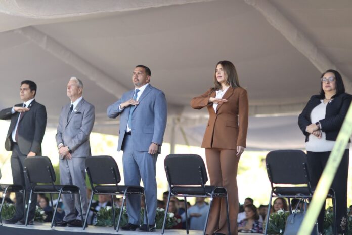 Durante la ceremonia se rindieron los honores a la enseña patria por parte de la Escolta y Banda de Guerra del CBTIS 128 y con la participación de la Banda de Música del Municipio.