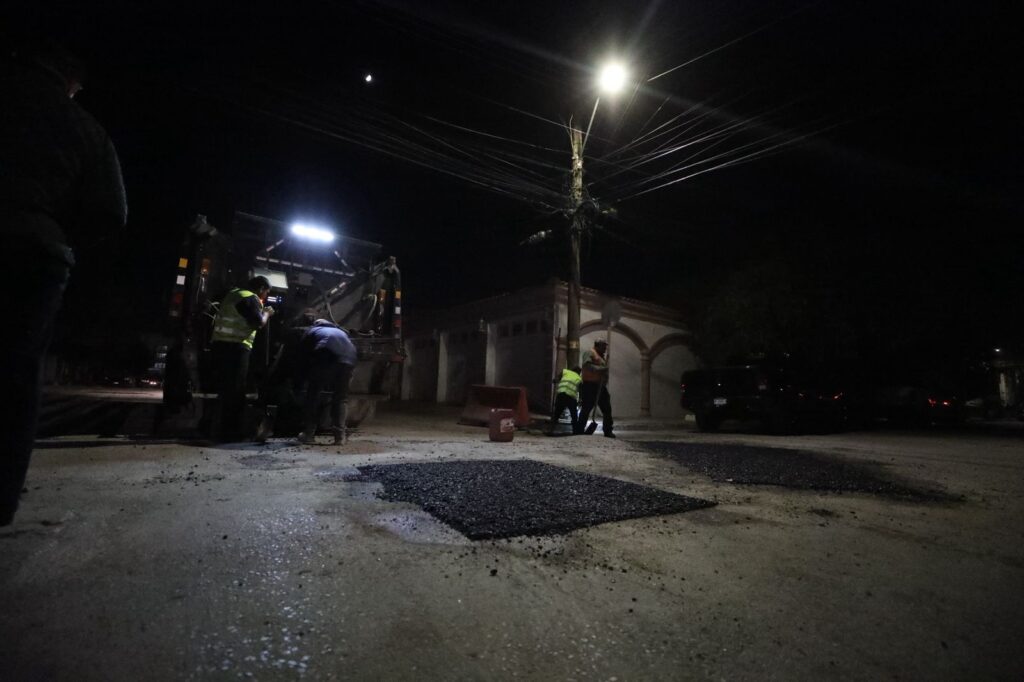 Esta noche el Presidente Municipal Cruz Pérez Cuéllar realizó una supervisión nocturna de trabajos de bacheo en la calle Venezuela y Aguilar Sáenz en la colonia Melchor Ocampo.