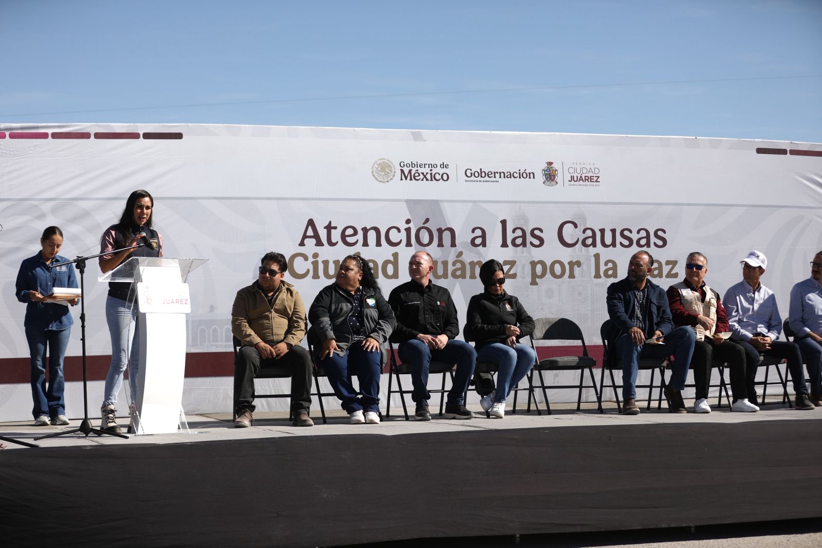 El secretario del Ayuntamiento, Héctor Rafael Ortiz Orpinel, saludó a los asistentes a nombre del Presidente Municipal, Cruz Pérez Cuéllar, y expresó que el objetivo de estas acciones es reconstruir y regresar la paz a los juarenses, para ello trabajan de manera conjunta Gobierno Municipal y Federal.