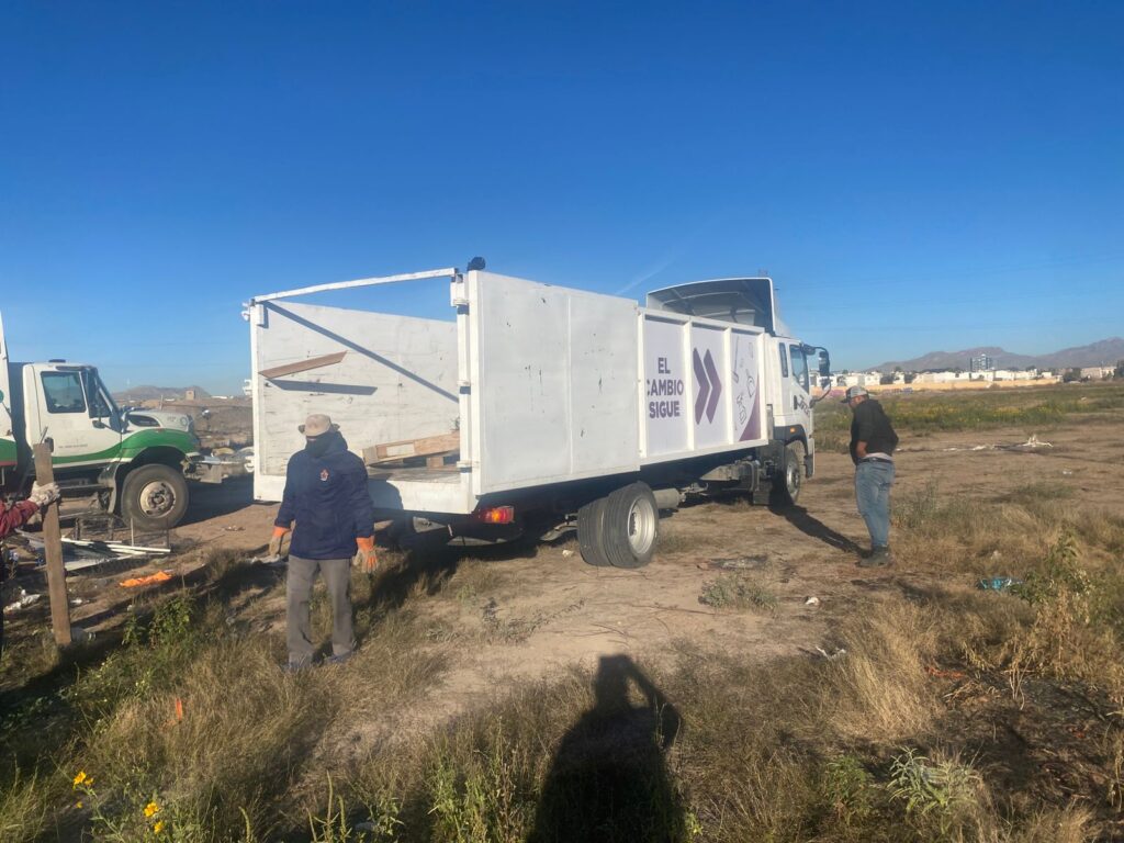 Con el objetivo de atender una petición ciudadana recibida por el Presidente Municipal, Cruz Pérez Cuéllar, este lunes personal de la Dirección de Limpia llevó a cabo un operativo especial de limpieza sobre el bulevar Francisco Villarreal Torres y la calle Aldabas, en coordinación con la Secretaría de Seguridad Pública Municipal.