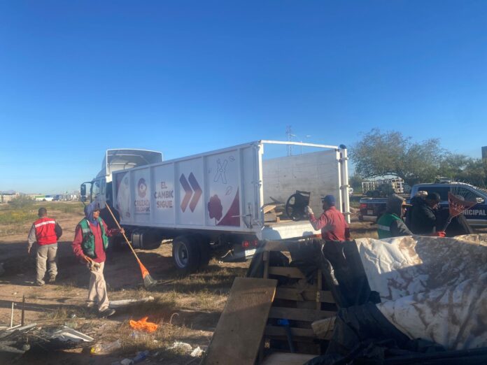 Con el objetivo de atender una petición ciudadana recibida por el Presidente Municipal, Cruz Pérez Cuéllar, este lunes personal de la Dirección de Limpia llevó a cabo un operativo especial de limpieza sobre el bulevar Francisco Villarreal Torres y la calle Aldabas, en coordinación con la Secretaría de Seguridad Pública Municipal.