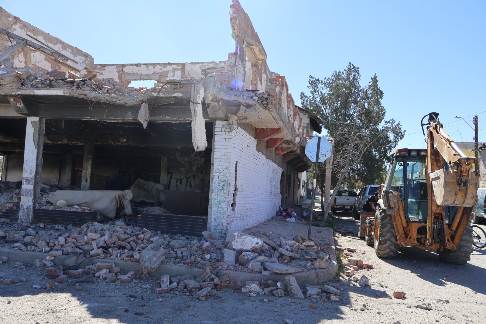 La Dirección de Limpia del Gobierno Municipal llevó a cabo un operativo de demolición en una finca ubicada sobre la avenida 5 de Febrero, en la colonia Chaveña, debido a las condiciones de riesgo que representaba para los ciudadanos.
