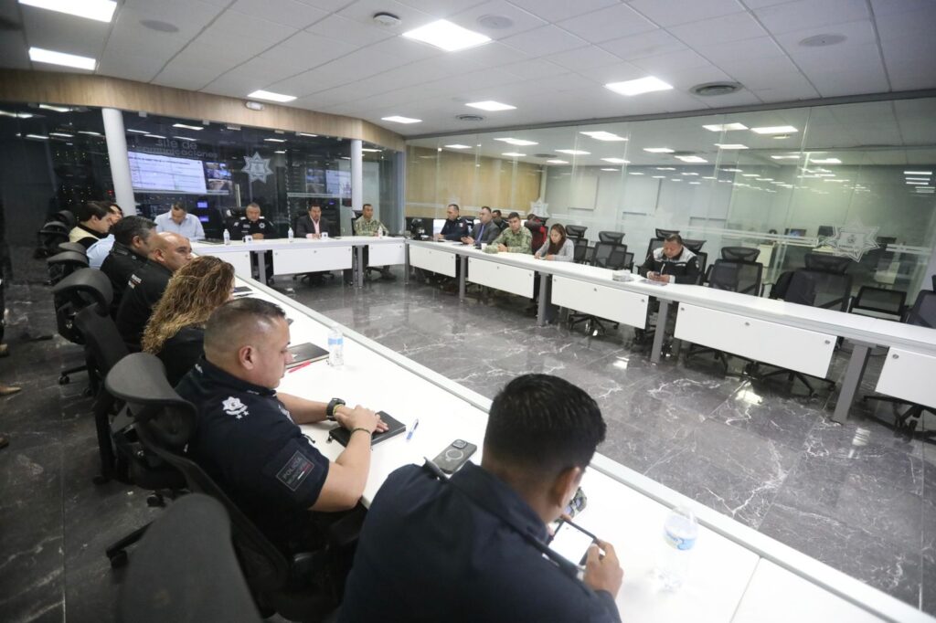El Presidente Municipal, Cruz Pérez Cuéllar, encabezó este día la reunión de la Mesa de Coordinación para la Construcción de la Paz, donde se presentaron los resultados más recientes de las corporaciones y dependencias municipales, con la participación de autoridades estatales y federales.