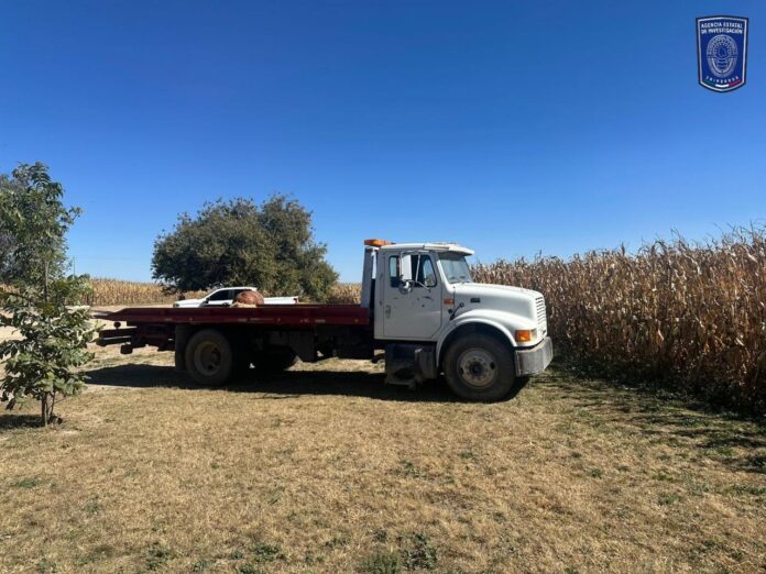 En el campo menonita número 109, recuperaron un camión de carga de la marca International, línea 4700 FE, modelo 1996, color blanco que contaba con reporte de robo interpuesto el 23 de octubre del 2025, en el municipio de Bachiniva.