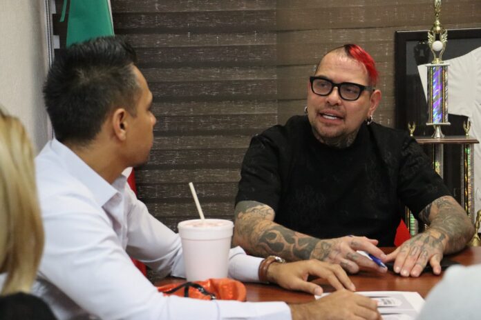 El luchador juarense José Julio Pacheco “Pagano”, visitó al director del Instituto Municipal de Deporte y Cultura Física de Juárez, Juan Carlos Escalante, para entregarle un reconocimiento por su dedicación al deporte, en especial a la lucha libre.