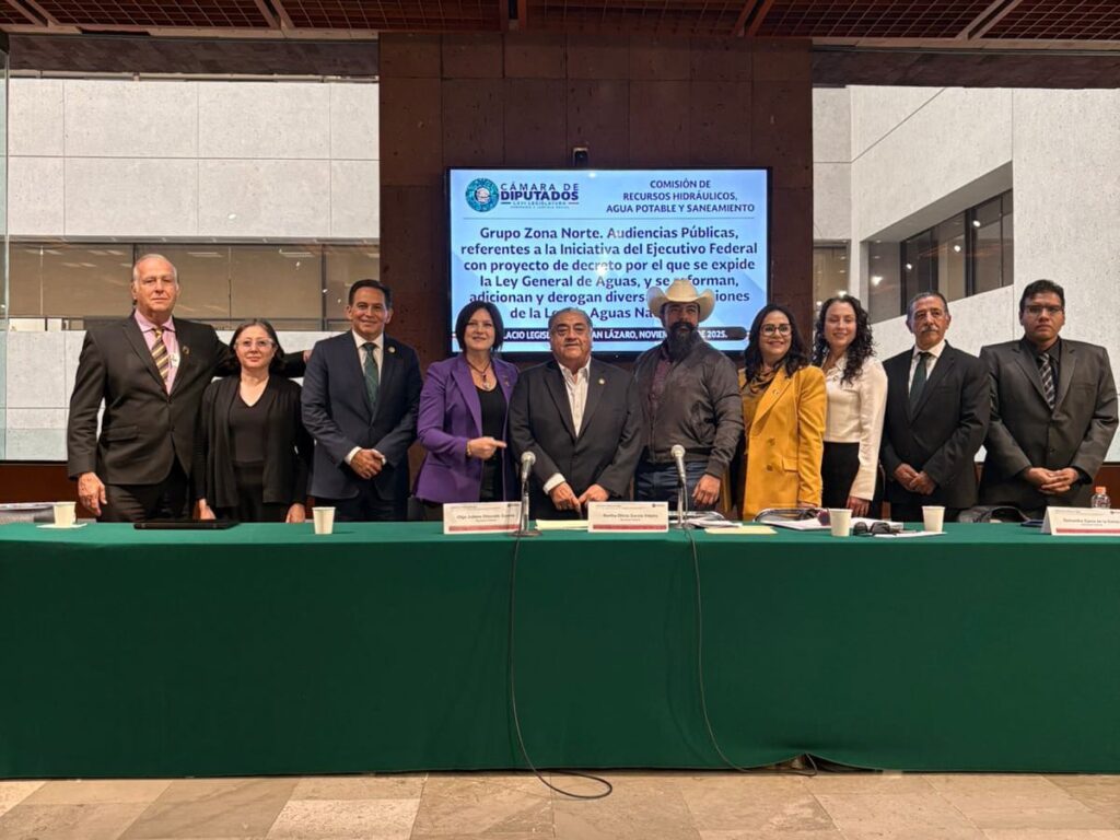 El diputado federal Alejandro Pérez Cuéllar, presidente de la Comisión de Asuntos Frontera Norte, participó este jueves en las Audiencias Públicas del Grupo Zona Norte convocadas por la Comisión de Recursos Hidráulicos, Agua Potable y Saneamiento de la Cámara de Diputados, como parte del análisis de la Iniciativa del Ejecutivo Federal para expedir la Ley General de Aguas y reformar diversas disposiciones de la actual Ley de Aguas Nacionales.